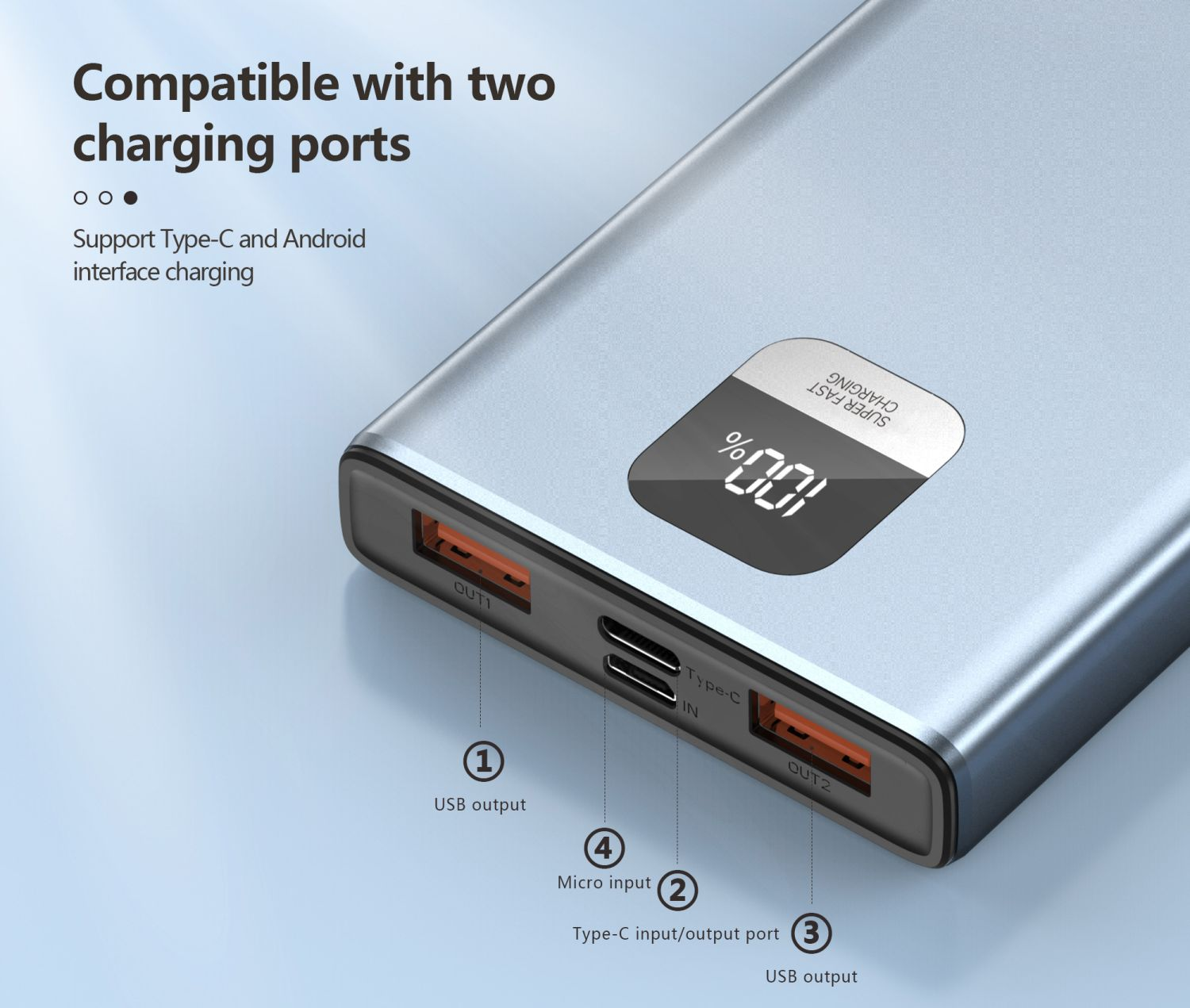 Remain powered up while being stylish with the Foneng GT100 22.5W Power Bank, a 10000mAh power bank capable of delivering reliable battery backup for your devices & peripherals. Its metallic gray power bank showcases an aesthetic and fashionable look, perfect for style-conscious users. Its slim profile ensures convenient usage and easy portability, even while charging your devices. With the ability to charge up to three devices simultaneously, you'll never be left without power when you need it. Multiple input and output ports provide consistent power delivery to a variety of accessories. LED digital liquid display gives you crystal-clear information about the remaining battery life, so you're always informed. Equipped with Qualcomm 3.0 quick charging capability, this power bank charges your devices faster and more efficiently. Its large power backup capacity ensures you stay powered up for longer hours, making it an essential accessory for on-the-go lifestyles.