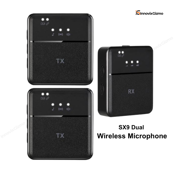 - Dual Microphone System: The SX9 Dual Wireless Microphone includes two individual microphones that can be used simultaneously, making it a great choice for interviews, podcasts, or other situations that require multiple audio inputs.