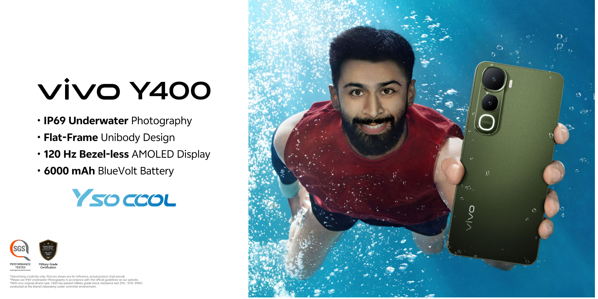 The 50 MP main rear camera captures sharp, detailed images with wide dynamic range, while the 2 MP depth sensor helps you create natural-looking portraits with excellent bokeh effects. From Night Mode and Underwater Photography to Slo-mo and Dual View video, the Y400 is packed with smart shooting options to elevate your photography game. The 8 MP front camera with an f/2.05 aperture is perfect for selfies, video calls, or vlogging. With features like Portrait Mode, Night Mode, and Dual View, you can create engaging content or just look your best during virtual meetings.
